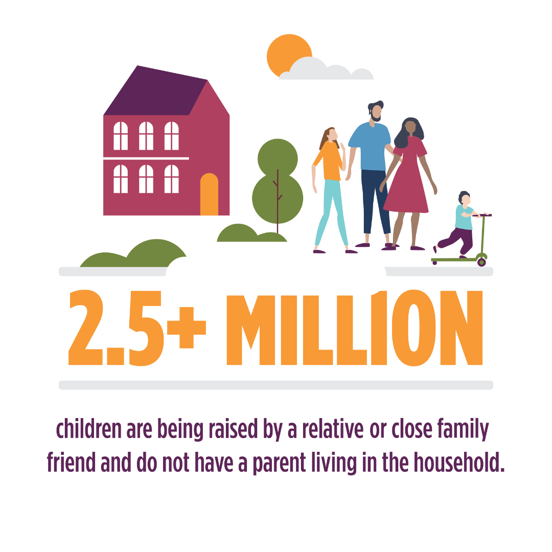 About 2.5 million children are being raised by a relative or close family friend and do not have a parent living in the household.