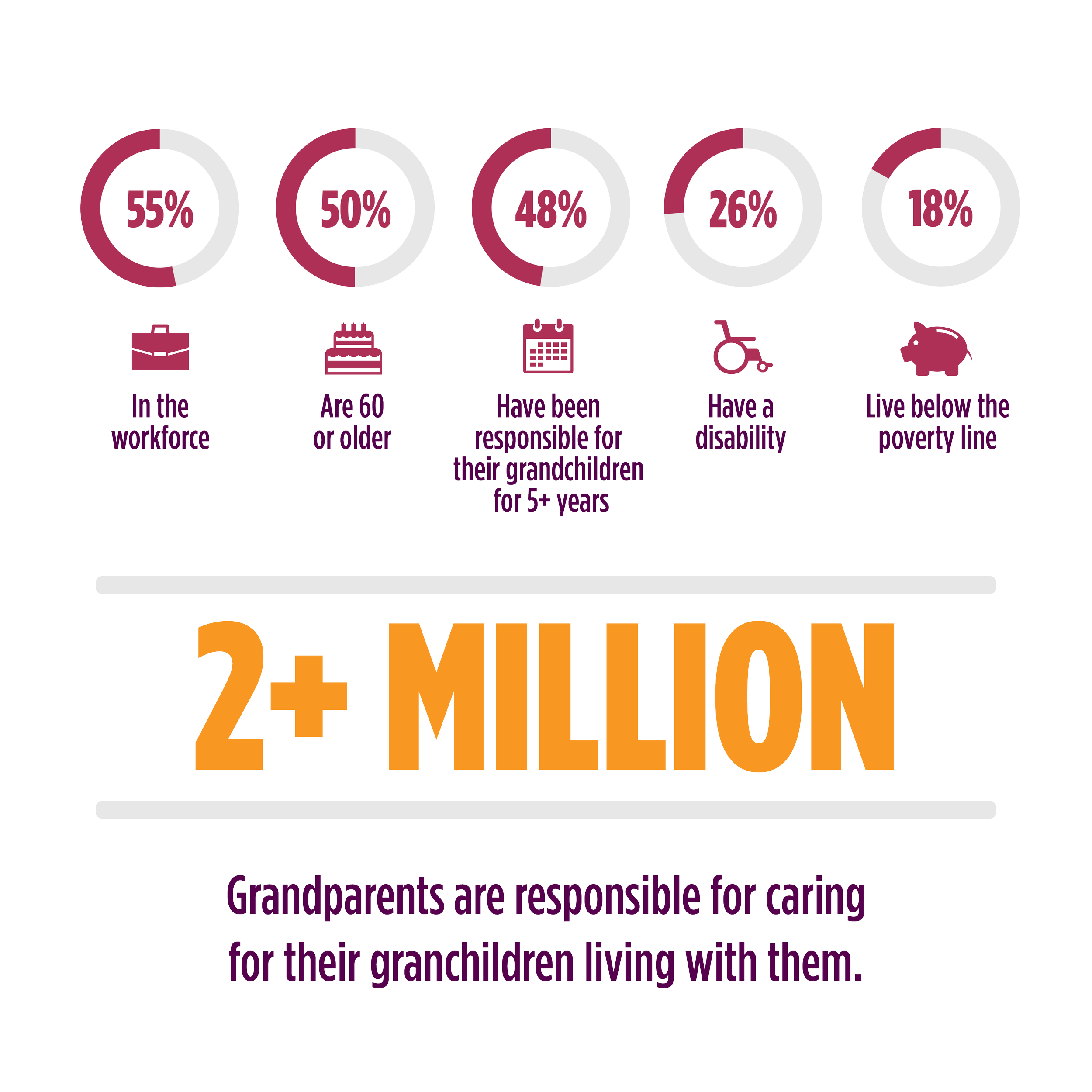 About 2.5 million children across the United States are being raised in grandfamilies—families in which grandparents, other adult relatives, or close family friends care for children without their parents in the home. These families are also known as kinship families.